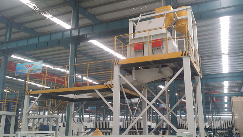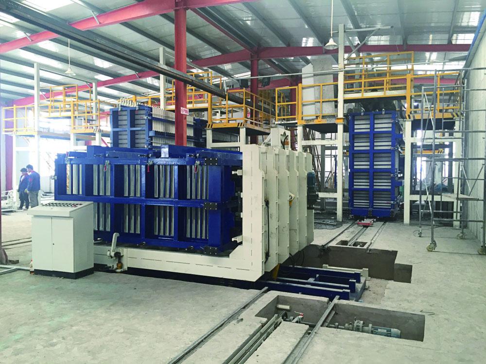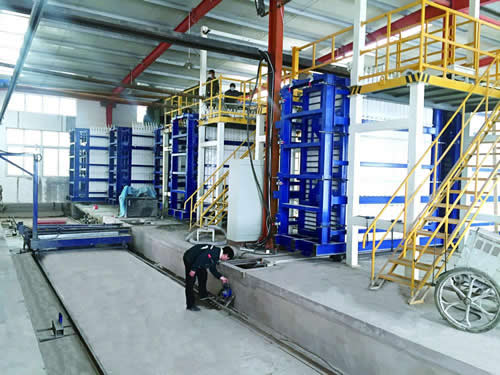 خط إنتاج ألواح الحوائط TYFZ16 قابل للاستخدام في الإنتاج بالدفعات لألواح الحوائط المركبة خفيفة الوزن من ألواح سليكات الكالسيوم من الجانبين. المواد القابلة للاستعمال في هذا الخط تشمل الأسمنت، الرماد المتطاير، جزيئات البولي ستارين EPS، الرمل و ceramsite. بحيث يمكن صب (قولبة) 40 قطع لكل دفعة.