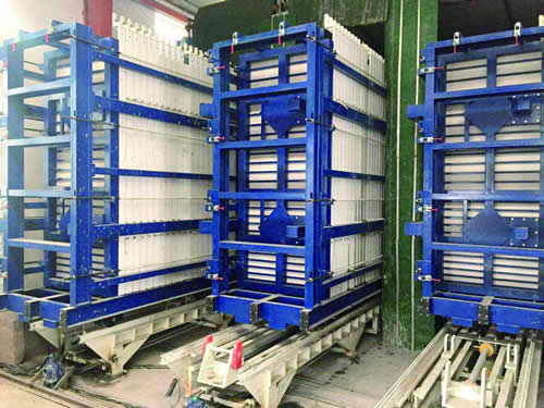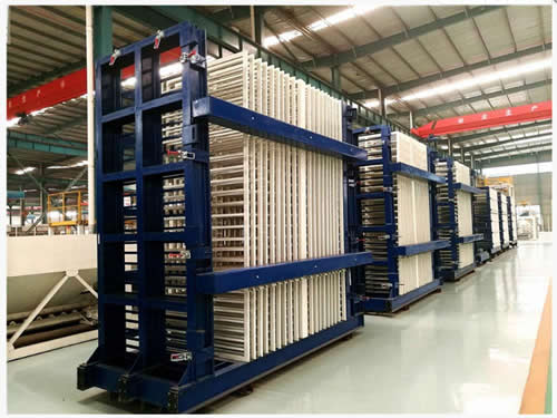 نظام الإخراج والتكديس لألواح الحوائط ينفذ كل عمليات الإخراج والتكديس لألواح الحوائط للمنتجات النهائية. مقارنة مع طرق إخرج ألواح الحوائط اليدوية التقليدية، فإن هذا النظام يقلل معدل المنتجات التالفة ويحسن من السعة.