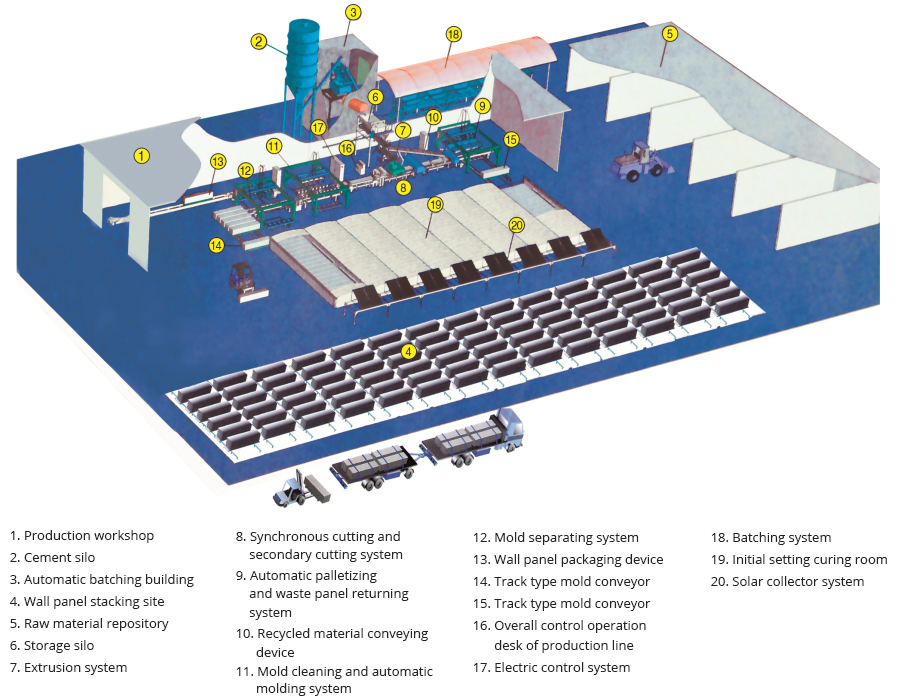 الحوائط الفاصلة للمباني، ألواح حوائط خرسانية سابقة الصب، خط إنتاج ألواح الحوائط، ماكينة ألواح الحوائط الداخلية