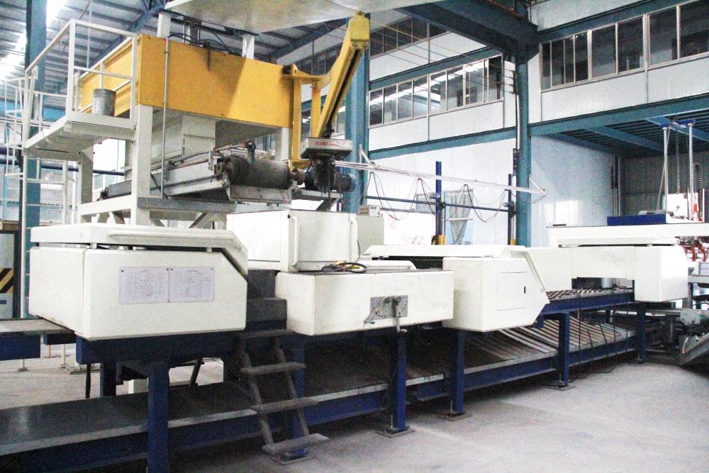 مواد ألواح الحوائط يتم بثقها مع اٌهتزاز بشكل متزامن من أجل الأستمرارية والصب الأوتوماتيكي، والذي يضمن الكثافة العالية والدقة لكل الأبعاد لللواح الحوائط. بعد ذلك، معالجة الضبط الأولية يمكن تفيذها بعد عملية البثق.
