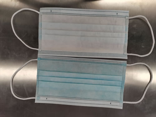 - في النهاية يتم إرسال قماشة الكمامة إلى محطة تثبيت خيط الأذن (استيك الكمامة)، حيث يتم لحامه على قماشة الكمامة، وبذك يكون قد تم تصنيع الكمامة النهائية. الكمامة كاملة التصنيع تنقل وتجمع بشكل آلي.