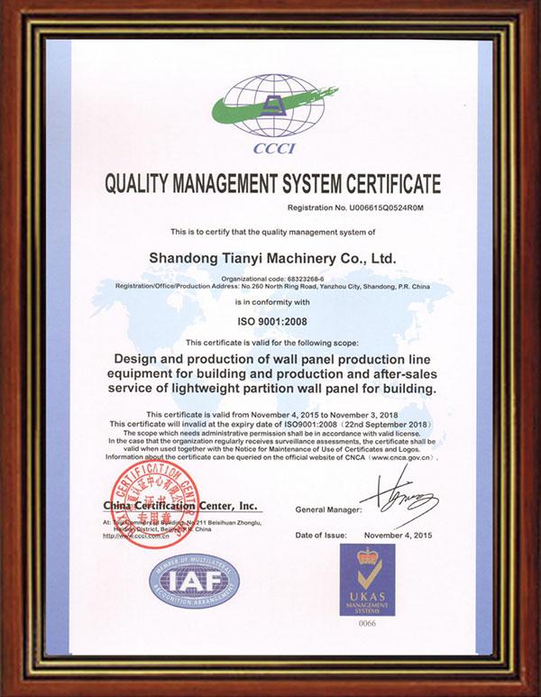 في سنة 2000، تم تسجيل وتأسيس شركة Shandoفي سنة 1998، نحن قمنا بالتخطيط لتسجيل وتأسيس مصنع Yanzhou Tianyi الجديد لمواد البناء، وبدأت طريق شاق لتكوين الشركة. ng Yanzhou Tianyi New Construction Material Machinery Co.,Ltd، والتم التصنيع بنجاح لماكينات تصنيع ألواح حوائط خفيفة الوزن وعلاوة عن تحسين القدرة الإنتاجية باستمرار.